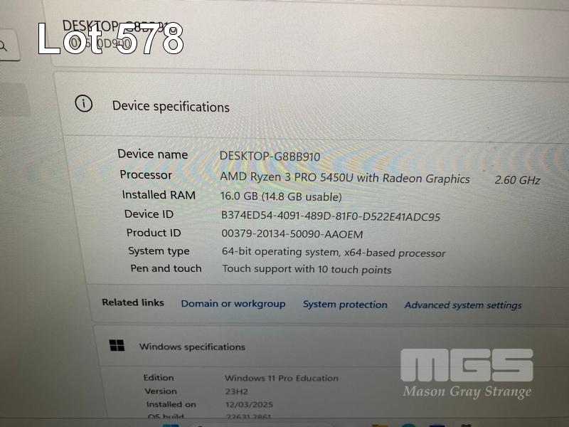 LAPTOP, LENOVO THINKPAD L14 Gen2, TYPE 20X6, AMD RYZEN 3 PRO 5450U @ 2.6GHz, 16GB DDR4 RAM, 256GB NVMe M.2 SSD, 14" TOUCHSCREEN (1920x1080), Wi-Fi, BLUETOOTH, WINDOWS 11 PRO EDUCATION INSTALLED (NO USB-C POWER SUPPLY) (NOTE: DAMAGE TO CASING, MARKS ON SCREEN) S/N:PF3KCSVR