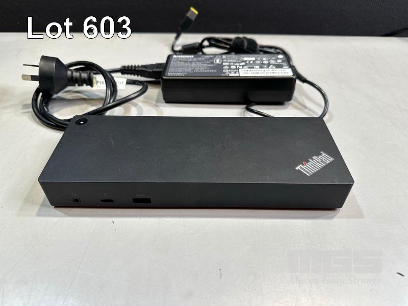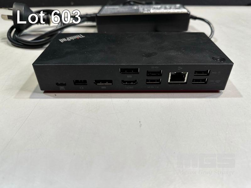 4 x LENOVO THINKPAD THUNDERBOLT 3 DOCKS, TYPE 40AC WITH 135W POWER SUPPLY (NO USB-C CABLES) 1 x LENOVO THINKPAD USB-C DOCK GEN2, TYPE 40AS WITH 90W POWER SUPPLY (NO USB-C CABLE)