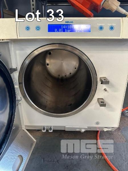 AUTOCLAVE, MELAG TYPE: VACKLAV 23BT S/NO: 1123-B1629 DOM: 2012 22.6 LITRE CAPACITY MAX TEMP: 144 DEGREE CELSIUS 240V