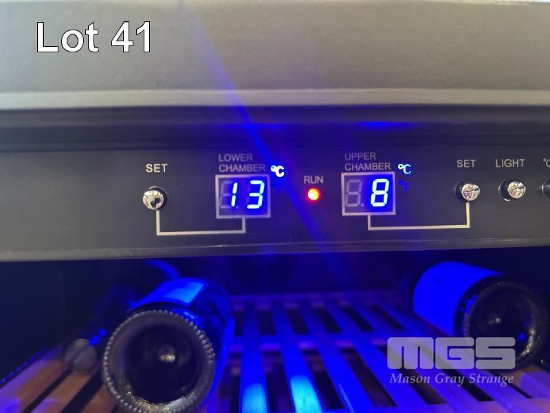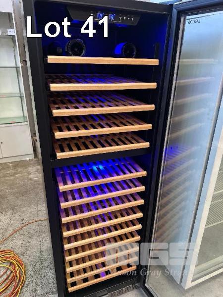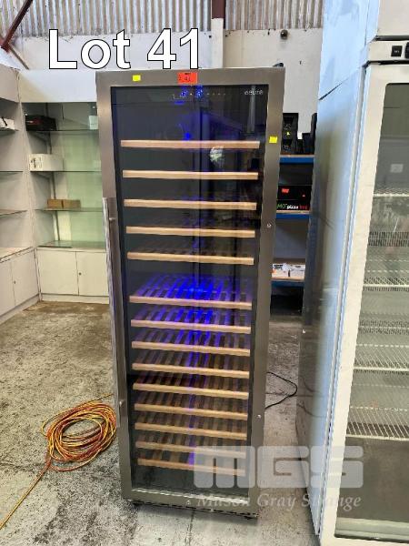 WINE COOLER FRIDGE, EURO MOD: E430WSCS1 UP TO 160 WINE BOTTLE CAPACITY, 450 LITRE FACTORY PRESET TEMPERATURE CHART UPPER: 5 DEGREE CELSIUS, LOWER: 12 DEGREE CELSIUS LCD LIGHT DISPLAY 240V, 10 AMP 2 x KEYS IN OFFICE WITH BOOK