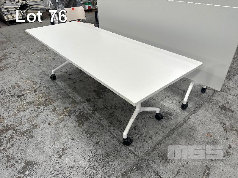 FLIP-TOP MOBILE TABLE, WHITE LAMINATE TOP, 210 x 80cm