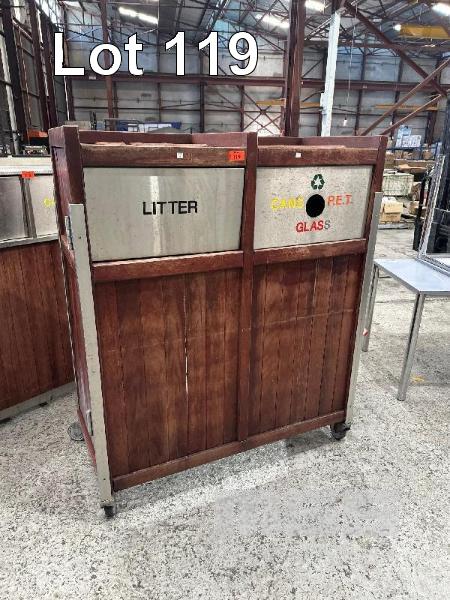 MOBILE BIN STORAGE UNIT, TIMBER/STAINLESS STEEL CONSTRUCTION 1300 x 600 x 1500mm (H)