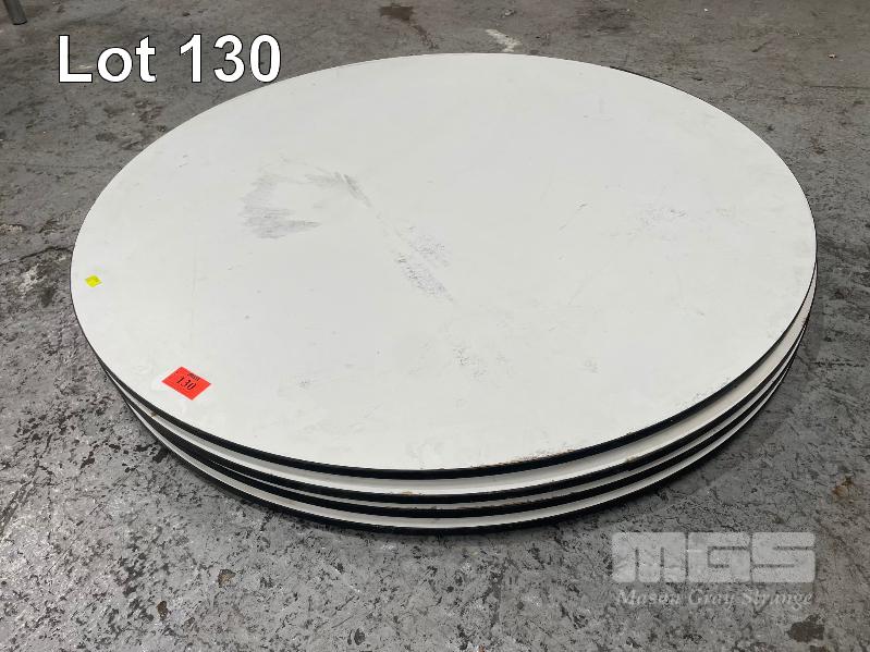4 x TABLE TOPS, 1200mm DIAMETER, WHITE TIMBER LAMINATE