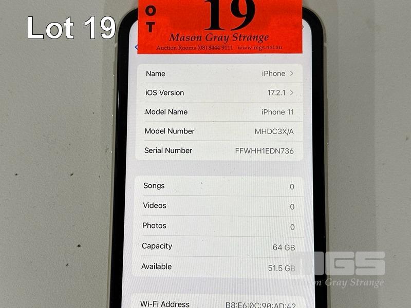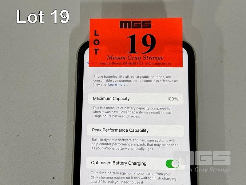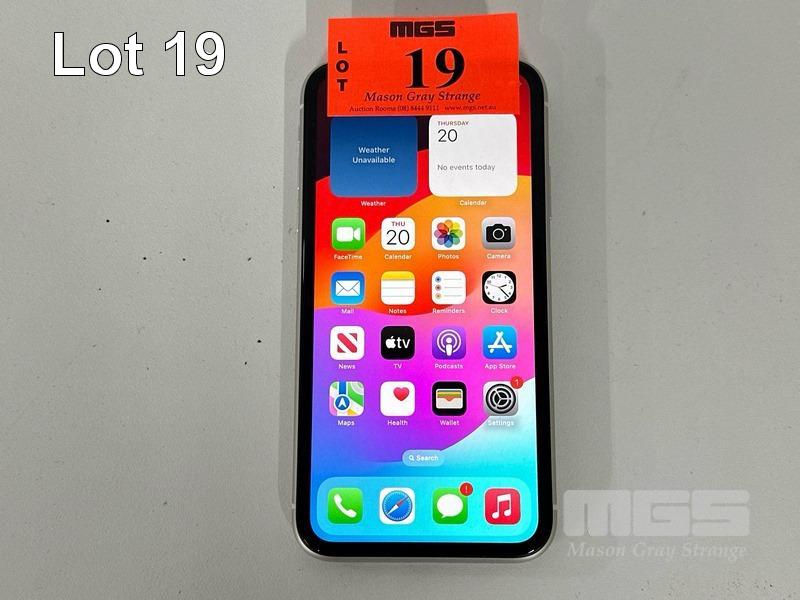 APPLE iPHONE 11, 64GB, MODEL MHDC3X/A, WHITE, BATTERY HEALTH 100% (NO CABLE, NO CHARGER)