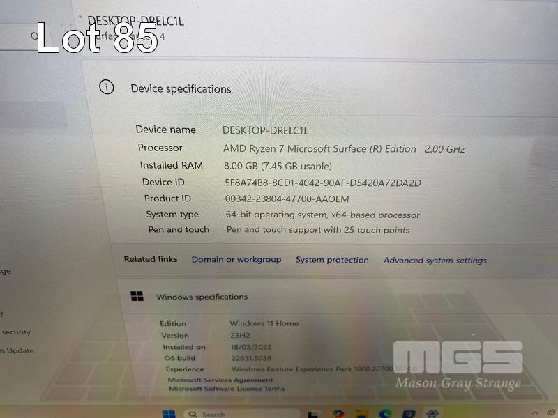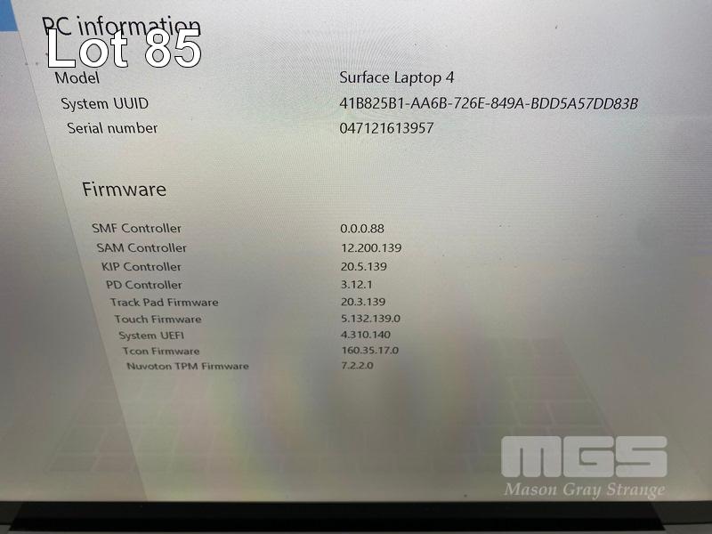 LAPTOP, MICROSOFT SURFACE 4, MODEL 1953, AMD RYZEN 7 @ 2GHz, 8GB RAM, 256GB SSD, 15" TOUCHSCREEN, WINDOWS 11 HOME INSTALLED & POWER SUPPLY