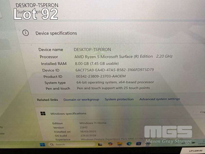 LAPTOP, MICROSOFT SURFACE 4, MODEL 1958, AMD RYZEN 5 @ 2.2GHz, 8GB RAM, 256GB SSD, 13.5" TOUCHSCREEN, WINDOWS 11 HOME INSTALLED & POWER SUPPLY