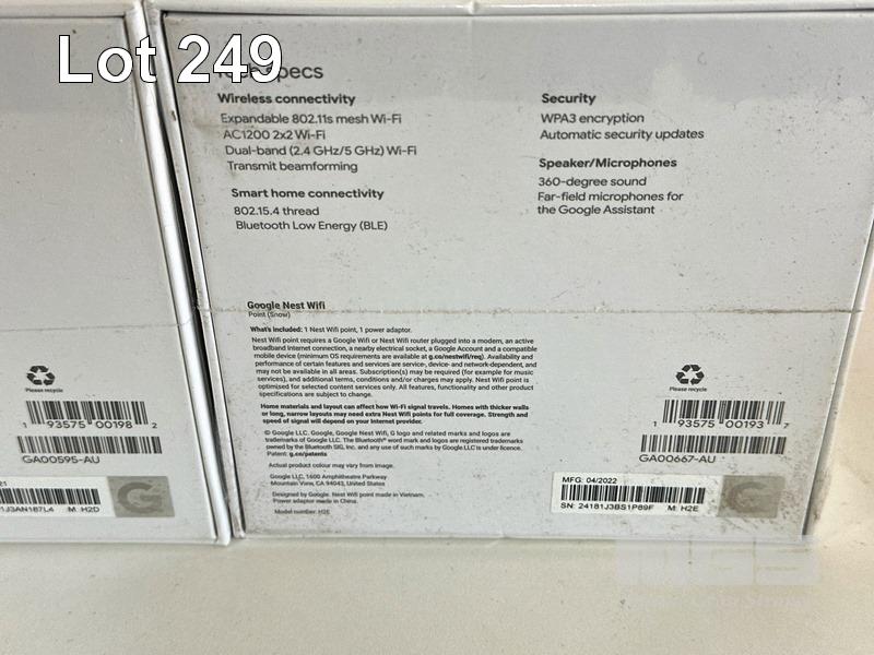 2 x GOOGLE NEST WiFi ROUTERS, MODEL H2D (SEALED IN BOX) 1 x GOOGLE NEST WiFi POINT, MODEL H2E (SEALED IN BOX)