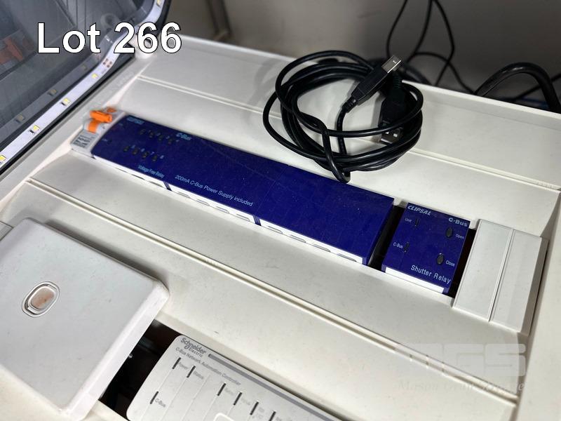 DATA RACK CABINET, 4RU (NO KEY) WITH UBIQUITI USW-24 24-PORT SWITCH, SCHNEIDER ELECTRIC C-BUS NETWORK AUTOMATION CONTROLLER, CLIPSAL C-BUS SHUTTER RELAYS, VOLTEX C66CB4N MCB ENCLOSURE