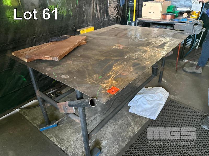 WELDERS BENCH, 1900 x 1300mm, 4mm PLATE TOP WITH 4" DAWN VICE, SMALL STEEL BENCH, 1200 x 900mm & BACKBOARD & BLUE PARTS STAND
