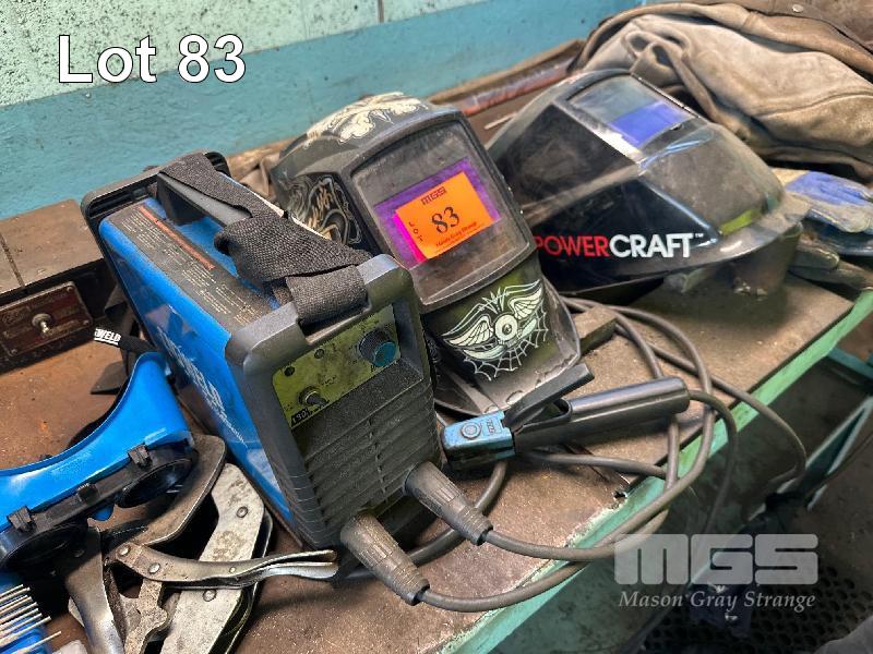 CIG CADDY WELDER, 130 INVERTER 2 x WELDING HELMETS, GLOVES, LEATHER & CLAMPS