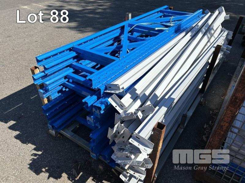 STEEL SHELVING, 9 x BAYS 2100mm (H) & 3 x WORK BENCHES, 1800 x 500 x 900mm (H) NOTE: DISASSEMBLED (NOT INCLUDING STILLAGES)