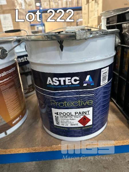 1 X 10 LITRE PAIL OF ASTEC PROTECTIVE POOL PAINT. CHLORINATED RUBBER CHLOR-TEC PP676. WHITE.