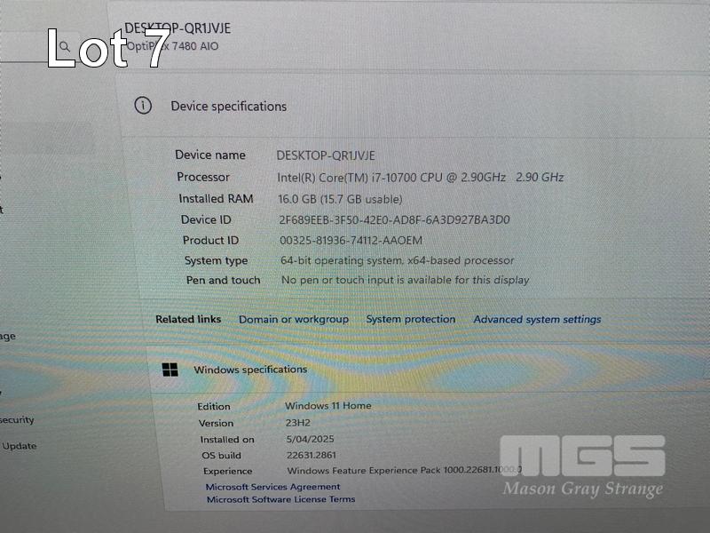 ALL-IN-ONE PC, DELL OPTIPLEX 7480, CORE i7 10700 (10TH GEN) @ 2.9GHz, 16GB DDR4 RAM, 512GB NVMe M.2 SSD, INBUILT 23.8" FHD WIDESCREEN (1920x1080), INTEL HD GRAPHICS, WEBCAM, 5 x USB, 1 x USB-C, WINDOWS 11 HOME INSTALLED, KEYBOARD & MOUSE S/N:5DP9H73