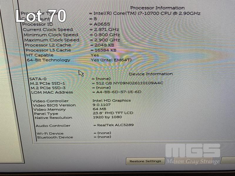 ALL-IN-ONE PC, DELL OPTIPLEX 7480, CORE i7 10700 (10TH GEN) @ 2.9GHz, 16GB DDR4 RAM, 512GB NVMe M.2 SSD, INBUILT 23.8" FHD WIDESCREEN (1920x1080), INTEL HD GRAPHICS, WEBCAM, 5 x USB, 1 x USB-C, WINDOWS 11 HOME INSTALLED, KEYBOARD & MOUSE S/N:5DP1H73
