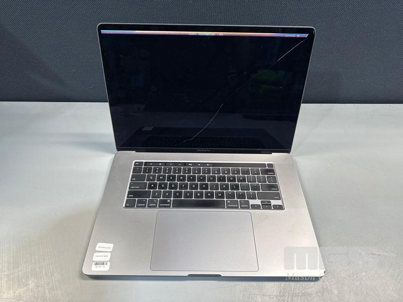 LAPTOP, APPLE MACBOOK PRO (A2141), CORE i9 9880H (9TH GEN) @ 2.3GHz, 16GB DDR4 RAM, 1TB SSD, 16" RETINA DISPLAY (3072x1920), 4GB AMD RADEON PRO 5500M VIDEO, INTEL UHD GRAPHICS 630, Wi-Fi, BLUETOOTH, MAC OS 13.5 INSTALLED (NO USB-C POWER SUPPLY) (NOTE: DAMAGED SCREEN - NO DISPLAY, DAMAGE TO CASING) S/N:C17ZPMWCMD6N