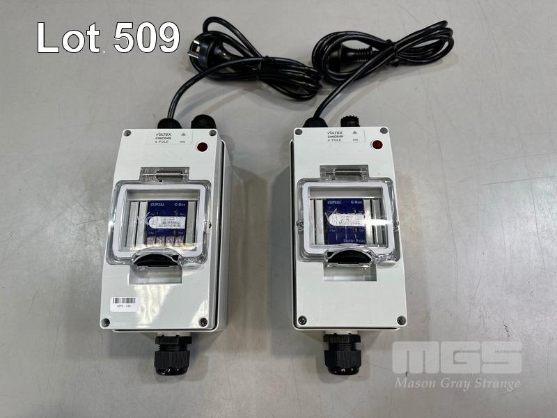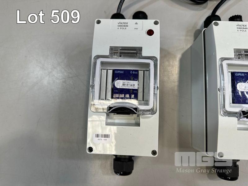 2 x VOLTEX C66CB4N IP66 MCB ENCLOSURES WITH CLIPSAL C-BUS SHUTTER RELAY UNITS