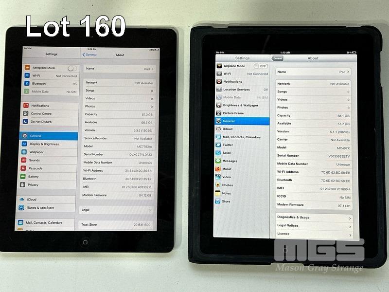 8 x APPLE iPADS INC. - 3 x APPLE iPAD 2, 64GB, MODEL A1396 - 1 x APPLE iPAD 2, 32GB, MODEL A1396 - 1 x APPLE iPAD 2, 16GB, MODEL A1396 - 1 x APPLE iPAD 1ST GEN, 64GB, MODEL A1337 - 1 x APPLE iPAD 3RD GEN, 64GB, A1430 - 1 x APPLE iPAD 3RD GEN, 32GB, A1430 (NO CABLES, NO CHARGERS)