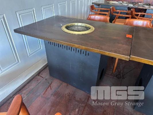 BBQ GRILL DINING TABLE, 1200 x 800 x 760mm (H), 35mm TIMBER TOP, 340mm (D) HOT PLATE, 240V 10amp