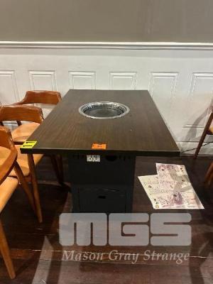 BBQ GRILL DINING TABLE, 1200 x 800 x 760mm (H), 35mm TIMBER TOP, 340mm (D) HOT PLATE, 240V 10amp