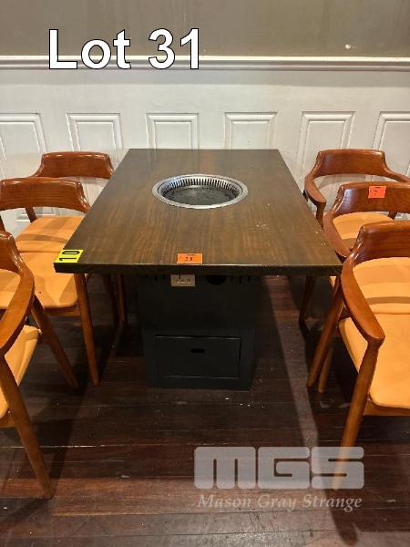 BBQ GRILL DINING TABLE, 1200 x 800 x 760mm (H), 35mm TIMBER TOP, 340mm (D) HOT PLATE, 240V 10amp