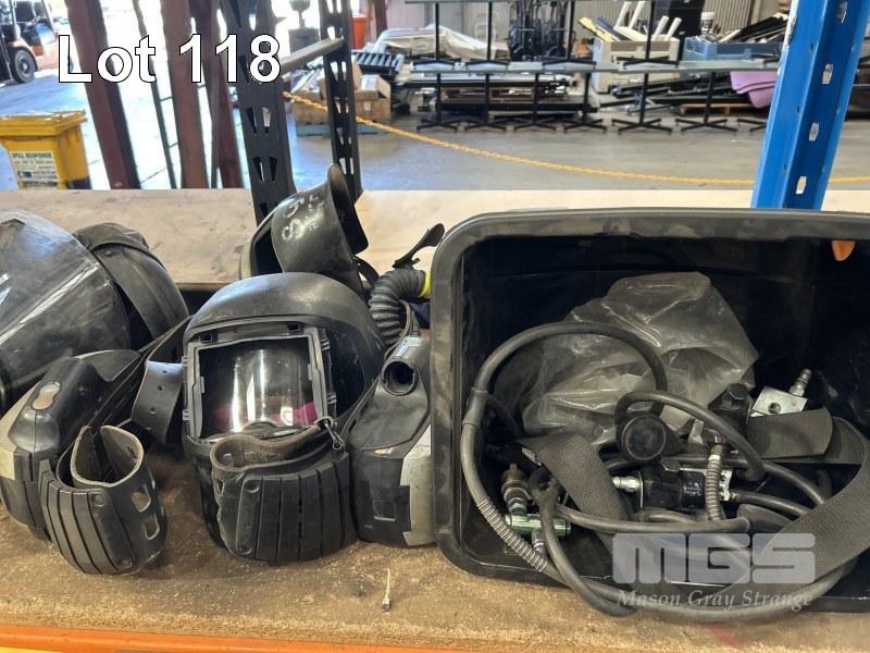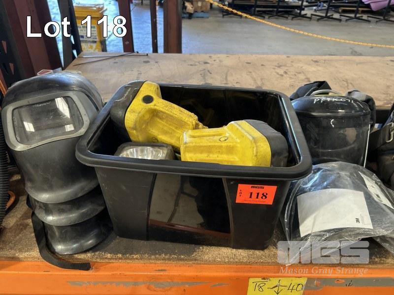 TOOL BAG, TORCHES & POSITIVE AIR FACE & WELDING MASKS