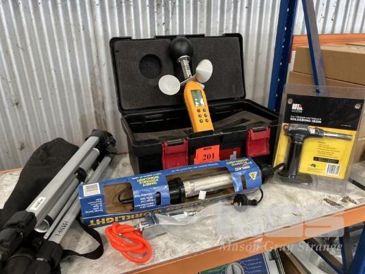 DIGITAL AIR FLOW METER, SOLDERING IRON GAS TORCH, WORK LIGHT & TRIPOD STAND