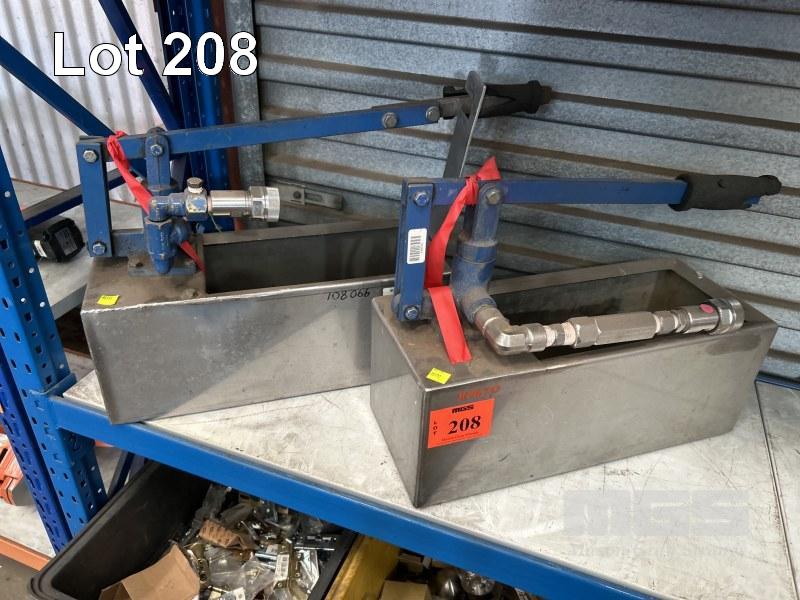 2 x PRESSURE TEST UNITS, MANUAL PUMP, STAINLESS STEEL TANK