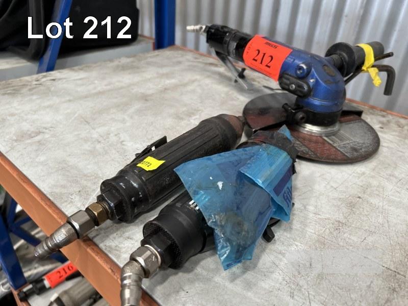 2 x PNEUMATIC DIE GRINDERS, ATLAS COPCO & ANGLE GRINDER, 180mm