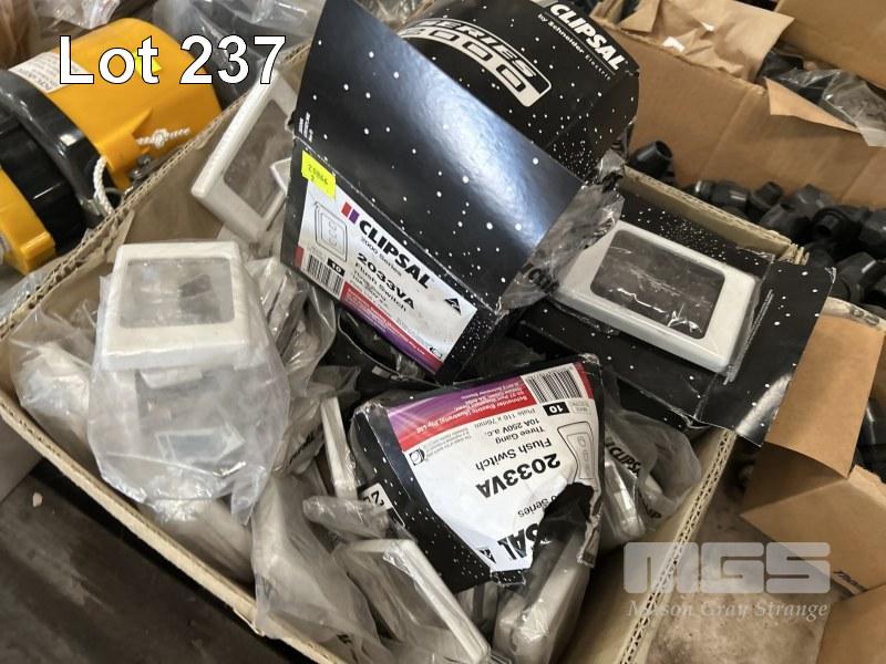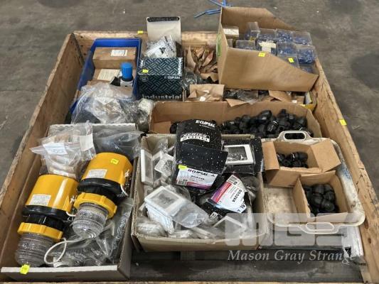 ASSORTED ELECTRICAL PARTS & COMPONENTS, INCLUDING TERMINALS, FITTINGS, STROBE LIGHTS, SWITCHES, REGULATORS, ETC