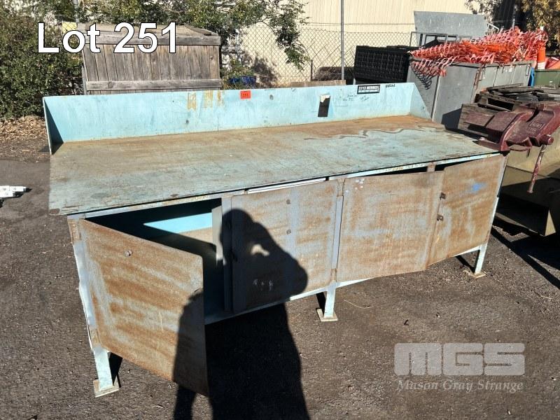 STEEL WORK BENCH, 2500 x 1000 x 900mm (H) WITH VICE, 4 DOOR