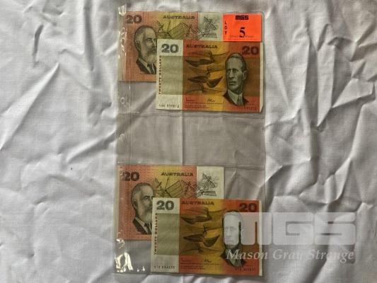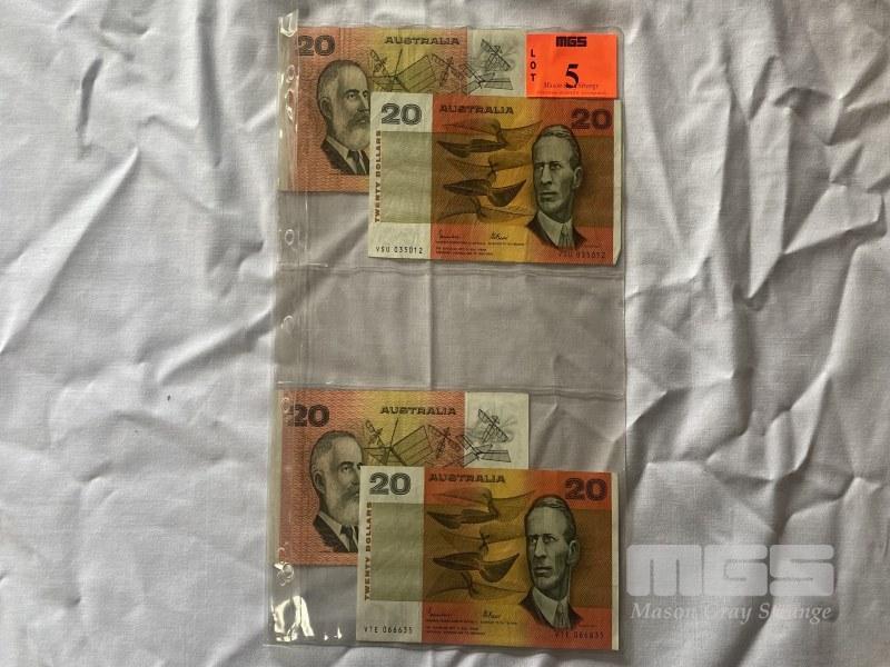 4 X AUSTRALIAN PAPER 20 DOLLAR NOTES