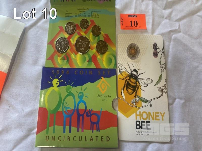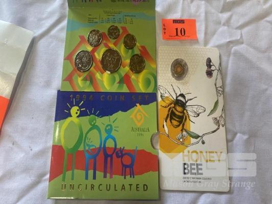 1994 AUSTRALIAN UNCIRCULATED COIN SET "YEAR OF THE FAMILY" & 2022 HONEY BEE CARDED 2 DOLLAR COIN "C" MINT MARK