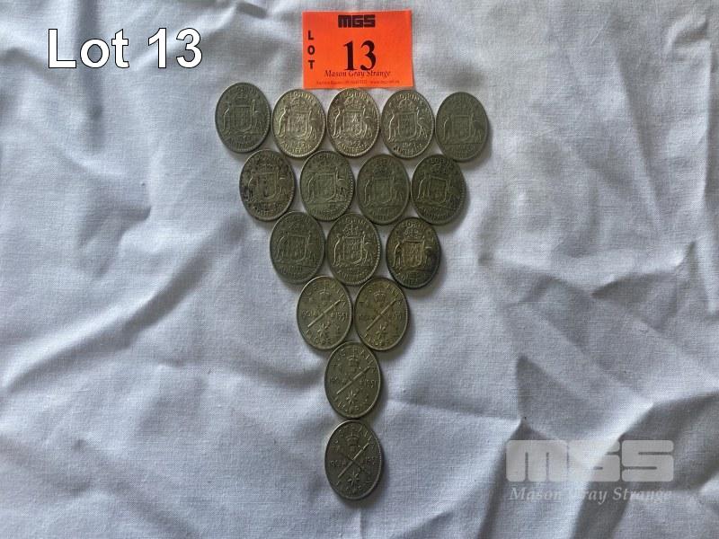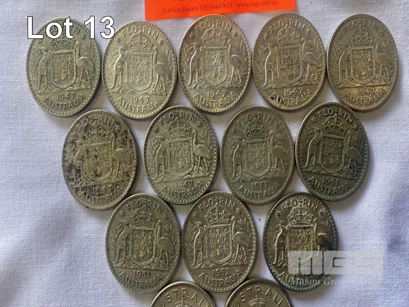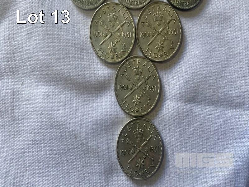16 X ASSORTED AUSTRALIAN FLORINS INC 7 X 1947, 3 X 1951, 2 X 1952 & 4 X 1951 COMMEMORATIVE