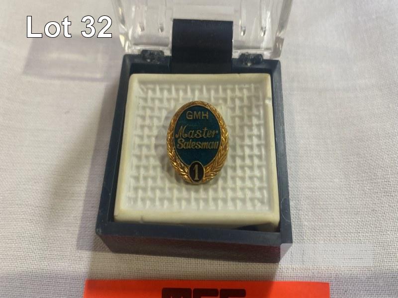 LAPEL PIN, GMH (HOLDEN), MASTER SALESMAN NUMBER 1 IN DISPLAY BOX, PIN NO: A083