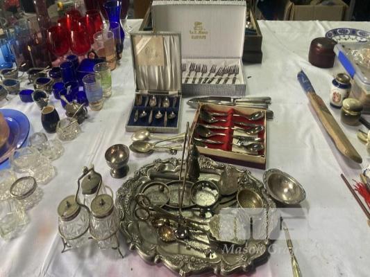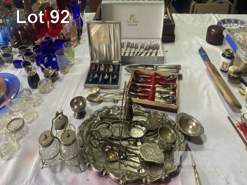 EPNS CUTLERY CANTEEN, DESSERT AND TEASPOON SETS, ENTREE FORKS, SALVER, CONDIMENT DISHES ETC