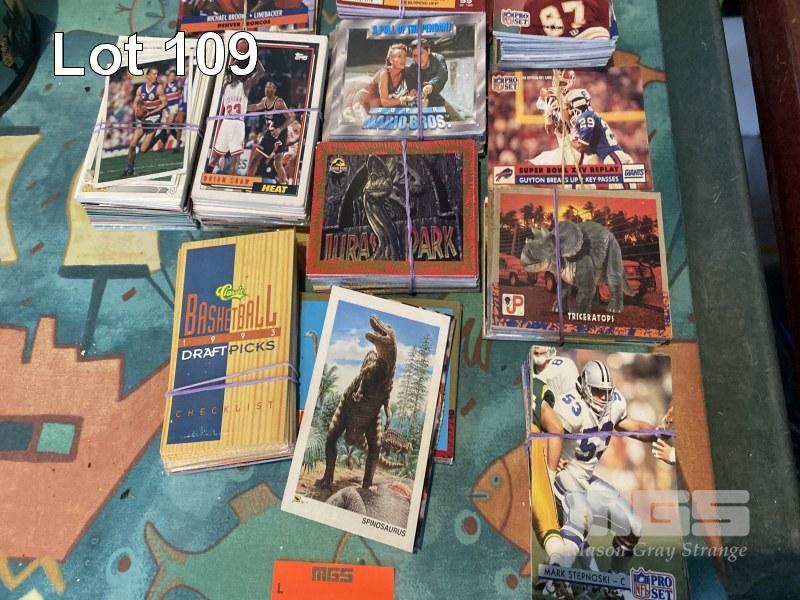 SPORTS & COLLECTORS CARDS, NBA, NFL, AFL, BASEBALL, JURASSIC PARK, ALIEN NATION, MARIO BROS & 1 x BOX LOOSE STAMPS & FIRST DAY COVERS