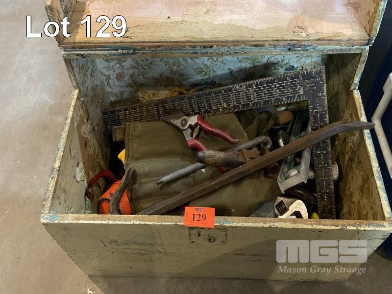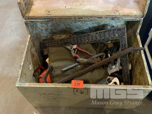 CARPENTERS TOOL BOX & CONTENTS ASSORTED HAND TOOLS