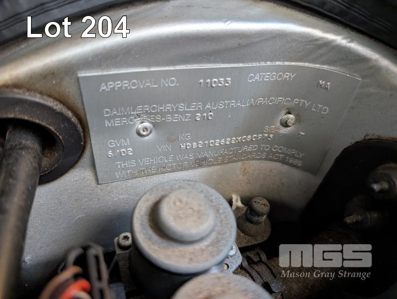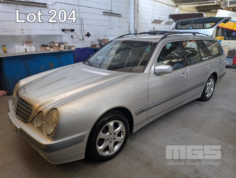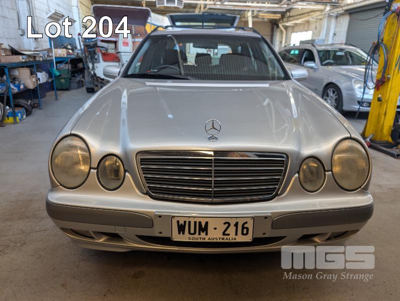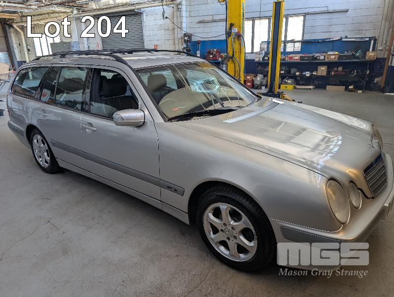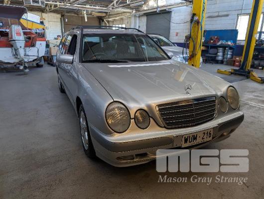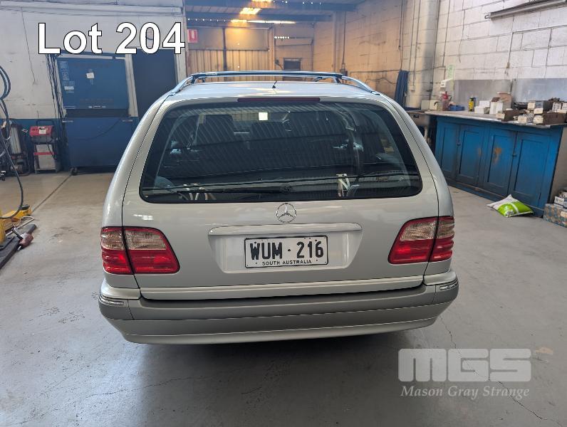 2002 MERCEDES BENZ E240T STATION WAGON REG: WUM216 (SA) (EXPIRED) VIN: WDB2102622X080975 ENG: 11291431263810 ODO: 201,195 2.4 LTR, 5 SPEED AUTO, PETROL, SILVER, 5 DOORS, 7 SEAT, ABS, AIR BAG, AIR CON, ALLOY WHEELS, CD PLAYER, CENTRAL LOCKING, CRUISE CONTROL, IMMOBILISER, LEATHER TRIM, POWER STEERING, POWER WINDOWS, ROOF RACKS, SPARE WHEEL, TRACTION CONTROL (WITH PAPERS, WITH 1 KEY/S, WITH OWNER'S MANUAL, WITH SERVICE BOOKS)