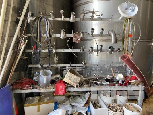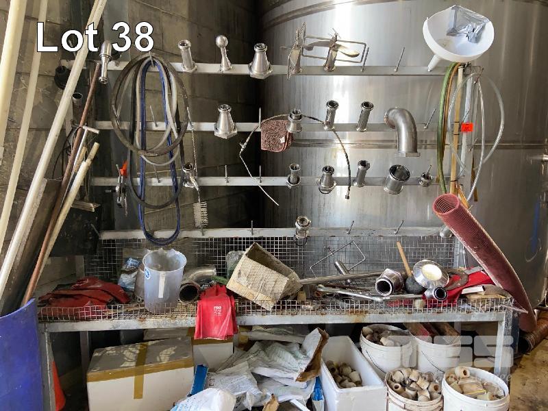 STAINLESS STEEL FITTING RACK WITH 2-4" FITTINGS,VALVES, ADAPTORS, PLUGS, ETC