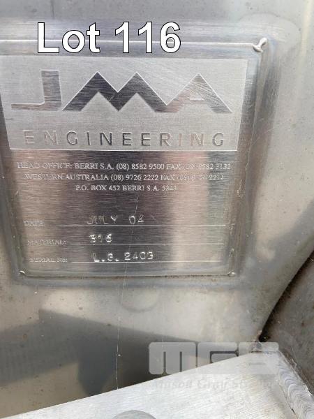 STAINLESS STEEL HOLDING TANK, JMA 2004 24kl CAPACITY STAINLESS STEEL 316 DIMPLING PLATE COOLING KEYSTONE VALVE & FITTINGS 6.0m (H) APPROX ON PLINTH