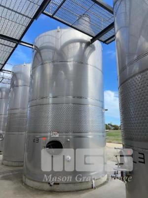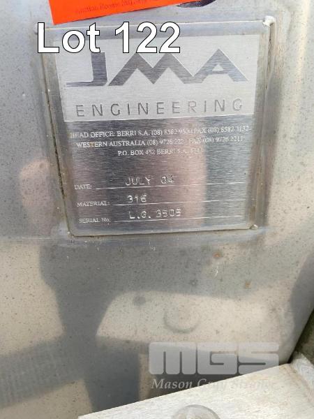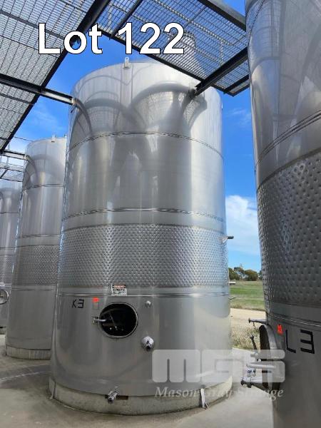 STAINLESS STEEL HOLDING TANK, JMA 2004 35kl CAPACITY STAINLESS STEEL 316 DIMPLING PLATE COOLING KEYSTONE VALVE & FITTINGS 6.0m (H) APPROX ON PLINTH
