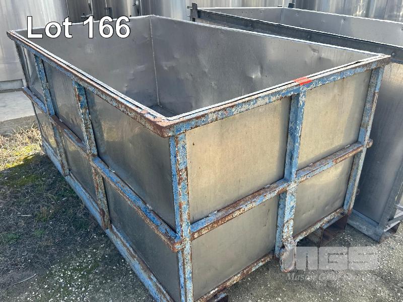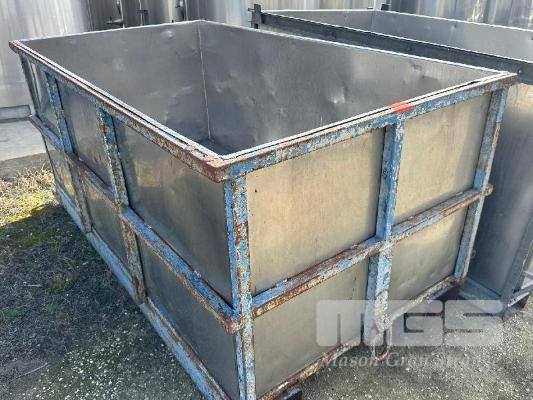 GRAPE BIN, 2300 x 1300 x 1100mm APPROX STEEL FRAME, STAINLESS STEEL BIN INSERT & POCKETS