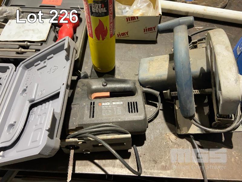 ASSORTED POWER & AIR TOOLS INCLUDING IMPACT GUNS, AIR CHIPPERS, JIGSAW, SAW, DISC SANDER, BLOW TORCH, ETC