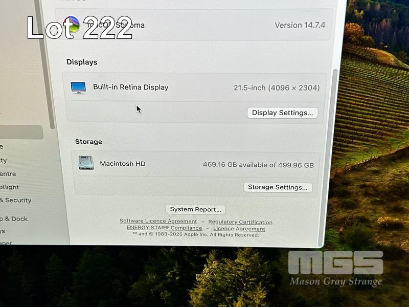 APPLE iMAC (A2116), CORE i5 8500 (8TH GEN) @ 3GHz, 16GB DDR4 RAM, 512GB SSD, BUILT-IN 21.5" RETINA DISPLAY (4096x2304), 4GB RADEON PRO 560X VIDEO, Wi-Fi, BLUETOOTH, MAC OS 14 INSTALLED, APPLE KEYBOARD & KENSINGTON MOUSE S/N:C02DN15R07F6
