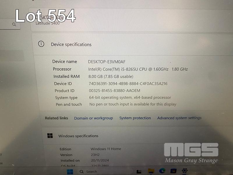 LAPTOP, DELL LATITUDE 5400, CORE i5 8265U (8TH GEN) @ 1.6GHz, 8GB DDR4 RAM, 512GB NVMe M.2 SSD, 14" WIDESCREEN (1920x1080), INTEL UHD GRAPHICS 620, Wi-Fi, BLUETOOTH, WINDOWS 11 HOME INSTALLED & POWER SUPPLY (NOTE: MINOR DAMAGE SCREEN FRAME, MARKS ON SCREEN) S/N:25CJZY2