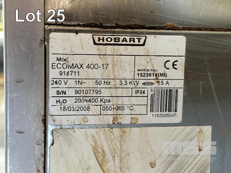 GLASSWASHER, ECOMAX BY HOBART MOD: ECOMAX 400-17914711.SIY.90107795 240V 15 AMP