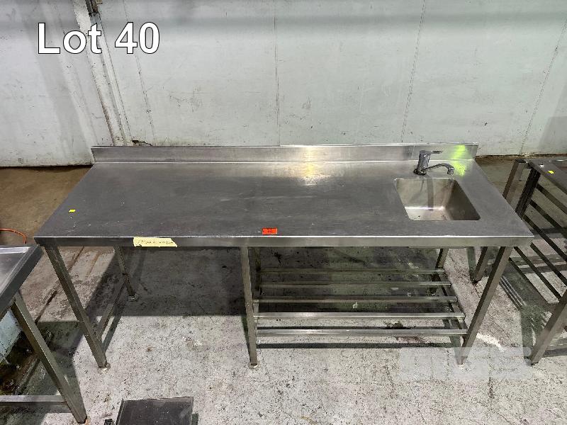 STAINLESS STEEL BENCH WITH SINK, 1950 x 650 x 900mm (H) WITH SPLASHBACK