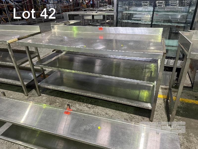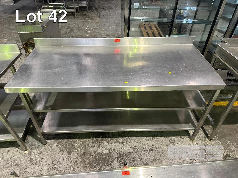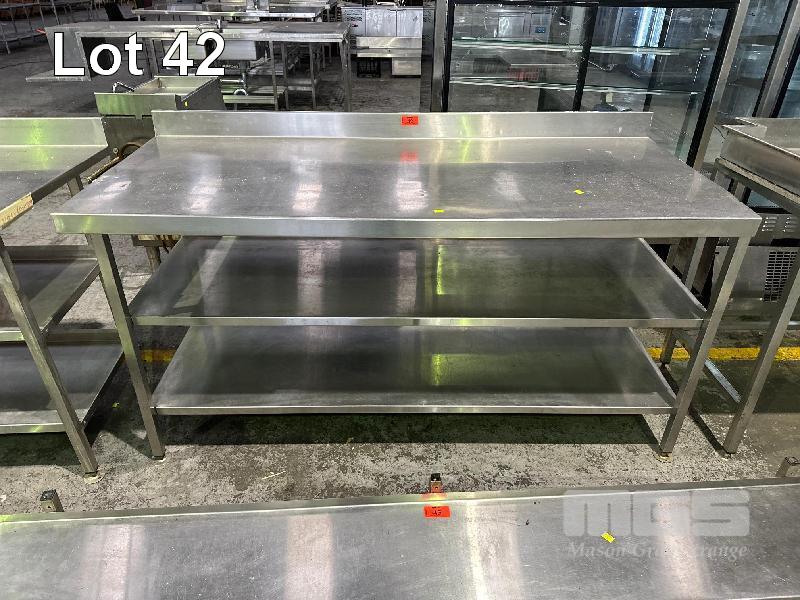 STAINLESS STEEL BENCH, 1750 x 750 x 900mm (H) WITH SPLASHBACK, 3 TIER