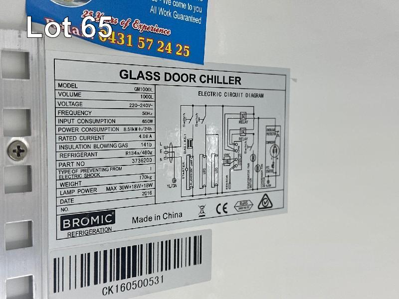 UPRIGHT DISPLAY FRIDGE, BROMIC MOD: 6M1000L CAP: 1,000 LITRE DOM: 2016 ILLUMINATED, DRO