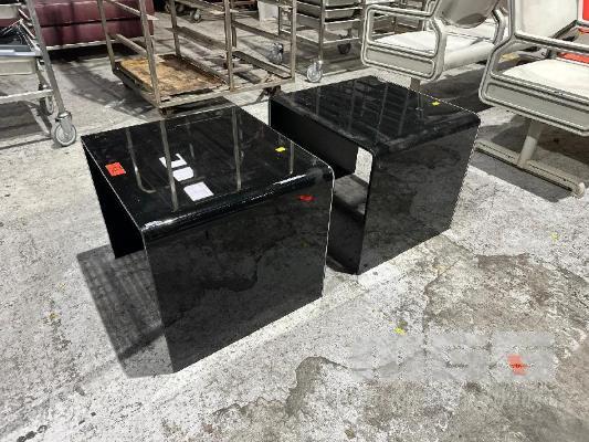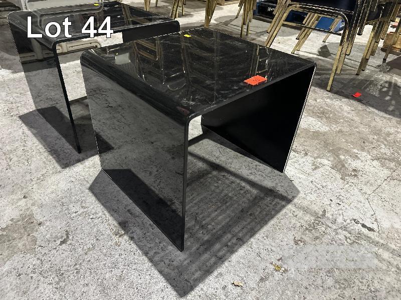 2 x CURVED GLASS SIDE TABLES, 480 x 530mm, (1 x CHIPPED)